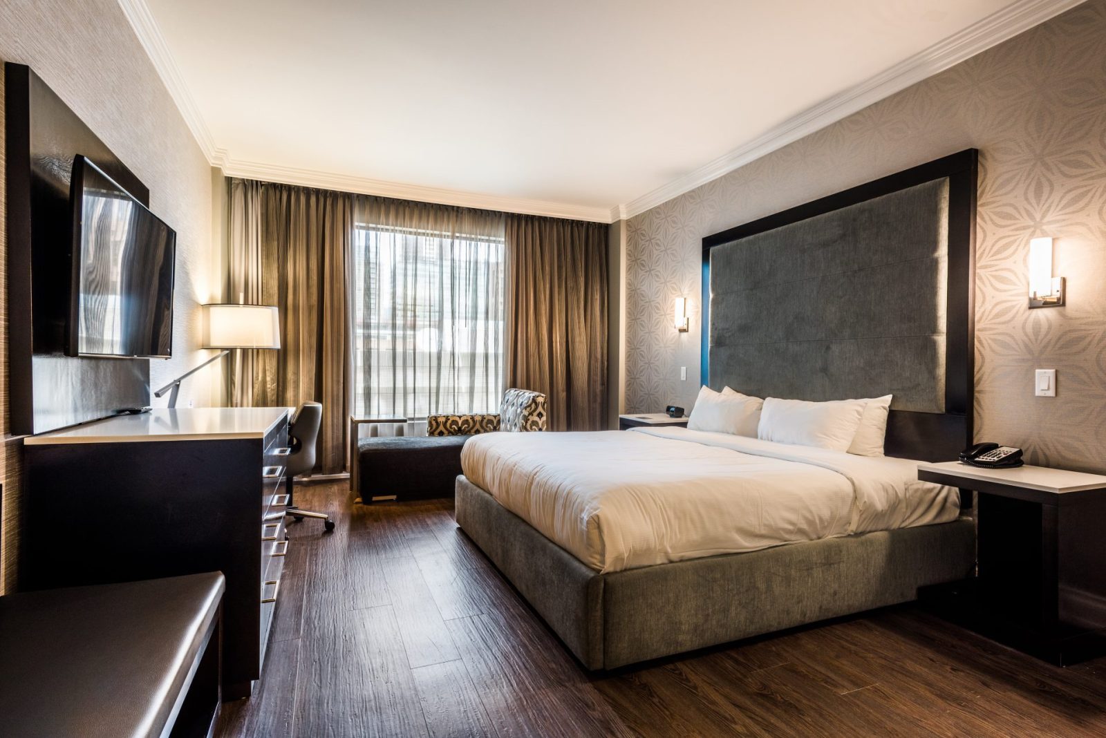 Phase 1 of the project involved interior renovations of 180 suites within the hotel including re-piping of the domestic water system. Scope included the partial demolition and re-modelling of existing rooms, with installation of new flooring, upgrading room control features and major renovations to the bathrooms and kitchenette areas. The second phase of the project included a complete renovation of the hotel spa which includes new tiles for the spa common areas, hot tub and washrooms. The current steam room was converted to an infrared sauna. New ice machines, along with renovations to the ice machine lobbies from the third to twelfth floor. The lobbies received an updated electrical distribution from a sub-panel, along with new walls tiles, luxury vinyl flooring, millwork surrounds, updated lighting and paint.