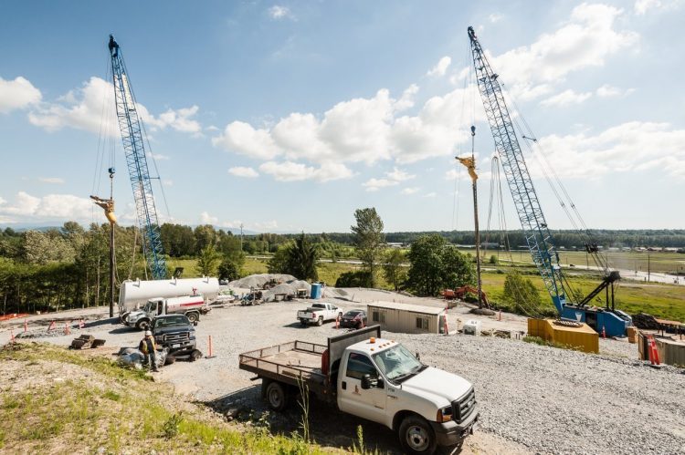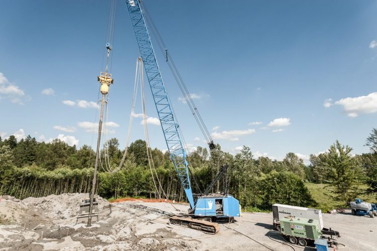 Site preparation and stone column installation to prepare property for new BC Hydro Substation. The work included clearing and grubbing of 17,300m2 of land and off-site disposal of approximately 35,000m3 of soil. The ground improvement work included the installation of 1,591 stone columns to a depth of 25 meters below grade. Due to the steep grades and elevation changes across the site, a 10 meter high Lock-Block retaining wall and 2 Sierrascape retaining walls were constructed to provide a level footprint for the construction of the access road and substation. Additional work included the installation of drainage pipe, ditches and final site grading.