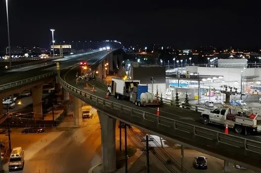 Bridge deck and curb repair, elastomeric rubber membrane installation for the Vancouver Airport Authority