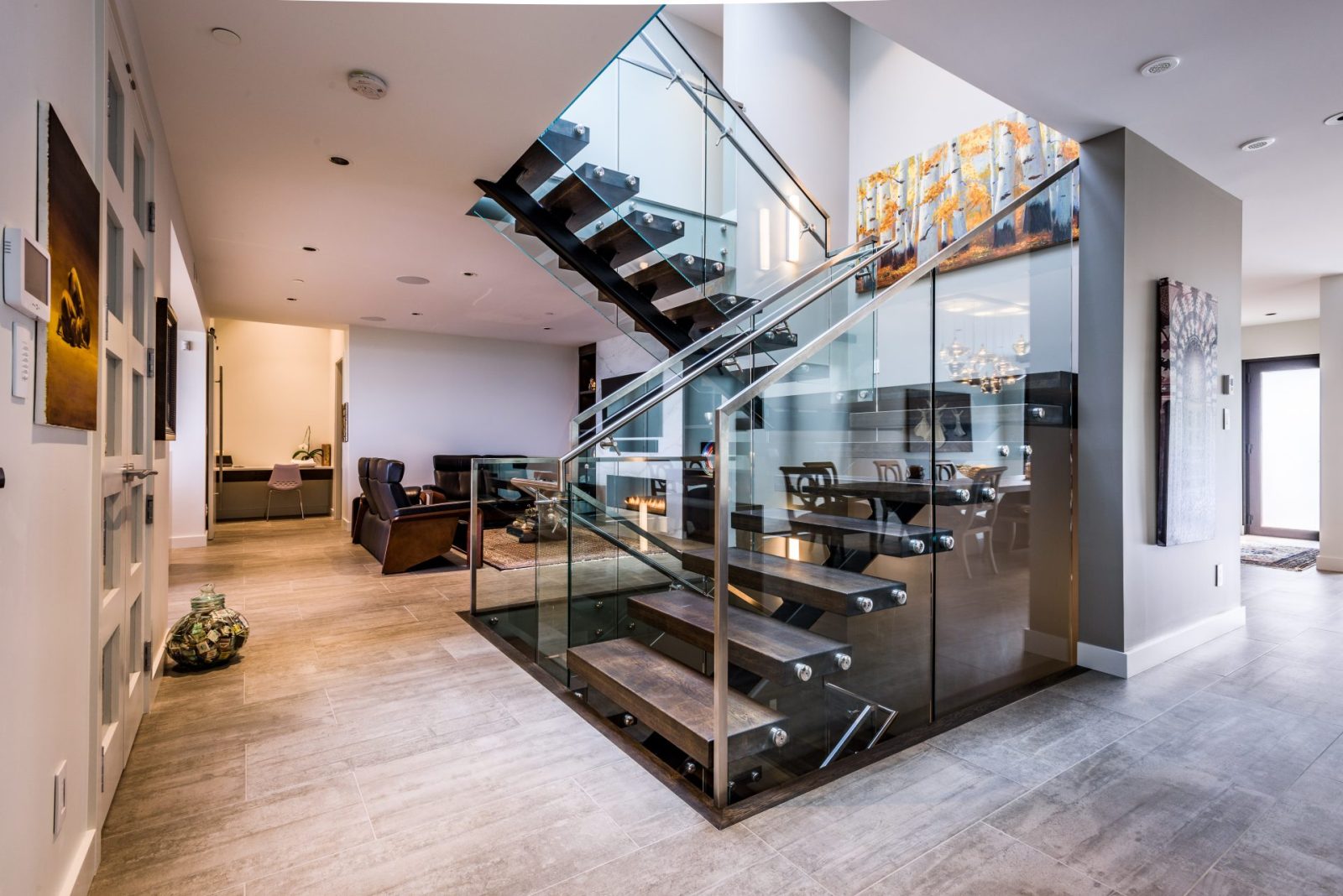 Each of these contemporary homes is approximately 6,500 square feet. Spread over three levels, they feature expansive curtain walls, architectural concrete, open floor-plans and premier finishes. The houses boast four bedrooms, six bathrooms, a grand kitchen with butler’s pantry, hydraulic elevator, media room, sauna, in-ground hot tub, exercise room, and three-season patio connected to the main entertaining area with sliding glass wall, as well as home automation and an emergency generator. The scope of work included the design, demolition and civil services, as well as construction and project management.