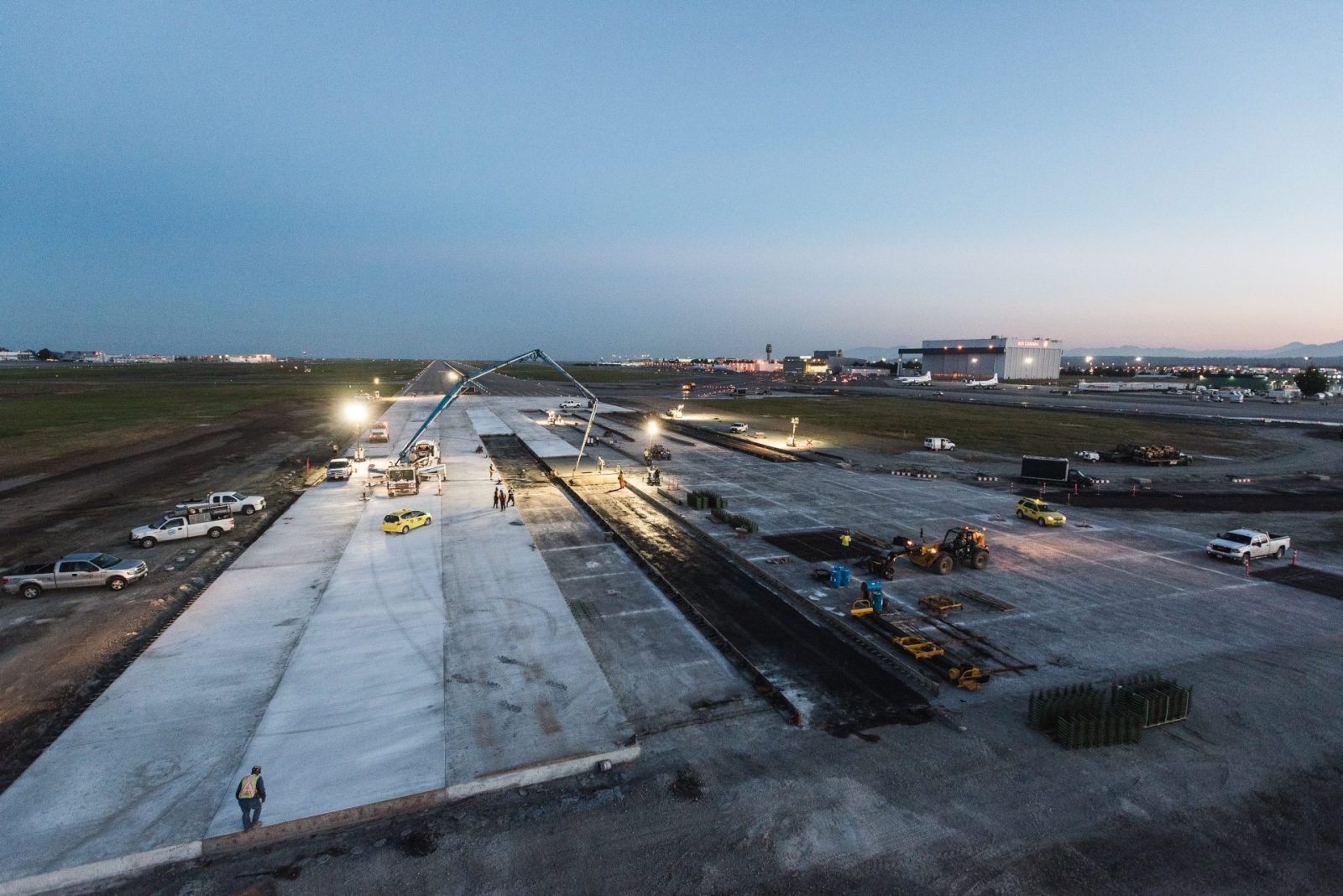 From 2015 to 2017 Jacob Bros was engaged by YVR to complete all 3 phases of the Runway End Safety Area (RESA) project on the east end of Runway 08-26L, the busiest of YVR’s 3 runways. The scope of work included 40,000m3 of subgrade excavation and sand subbase installation, 30,000m3 of sand preload, special RESA pavement structure, temporary taxiway asphalt paving, 3,500 meters of electrical duct banks and related concrete vaults were built, and over 885 centerline and edge lights were installed as part of completing electrical infrastructure and landscaping. All works were completed with extreme jet blast considerations taken into account.