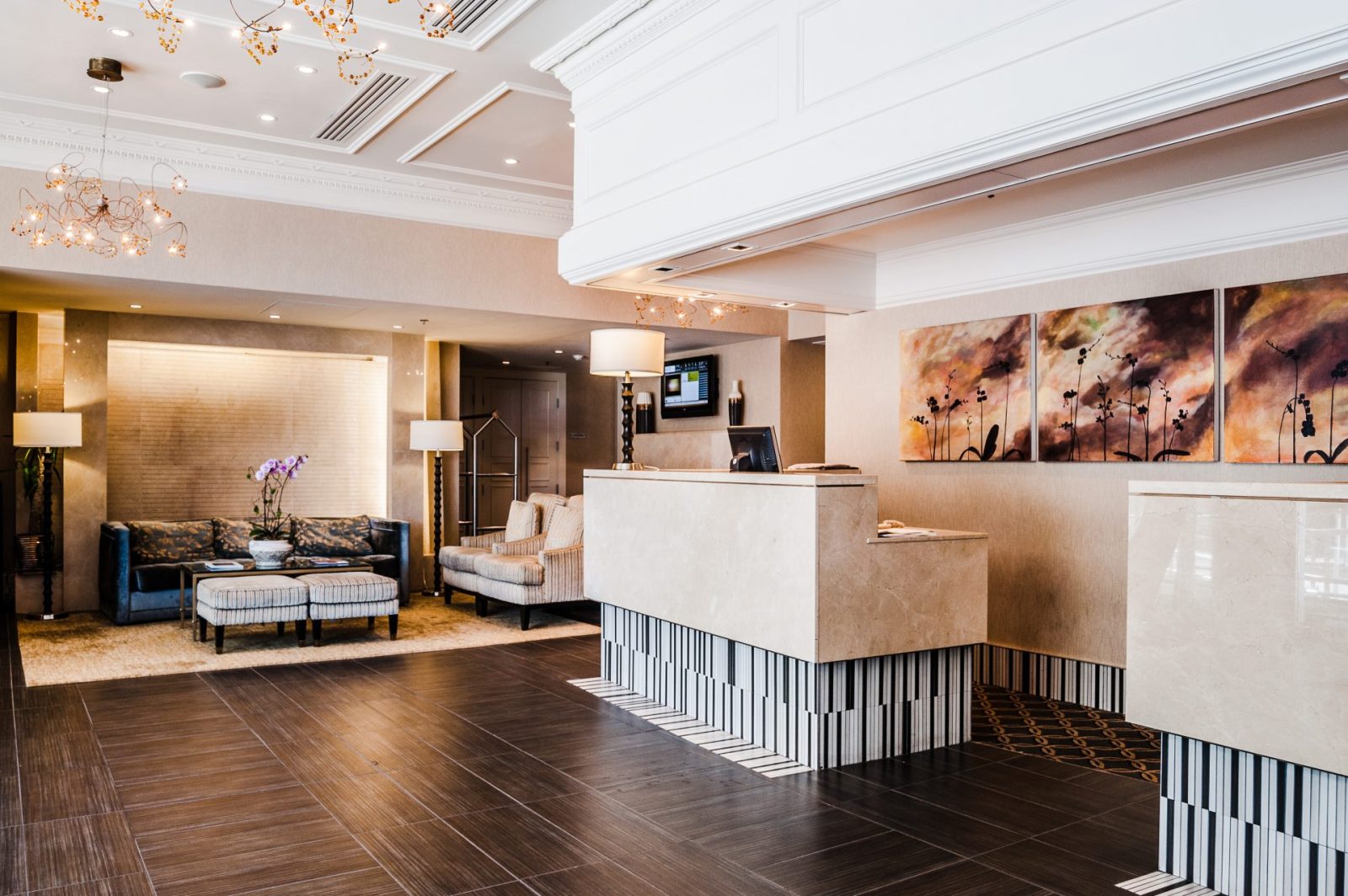 Phase 1 of the project involved interior renovations of 180 suites within the hotel including re-piping of the domestic water system. Scope included the partial demolition and re-modelling of existing rooms, with installation of new flooring, upgrading room control features and major renovations to the bathrooms and kitchenette areas. The second phase of the project included a complete renovation of the hotel spa which includes new tiles for the spa common areas, hot tub and washrooms. The current steam room was converted to an infrared sauna. New ice machines, along with renovations to the ice machine lobbies from the third to twelfth floor. The lobbies received an updated electrical distribution from a sub-panel, along with new walls tiles, luxury vinyl flooring, millwork surrounds, updated lighting and paint.
