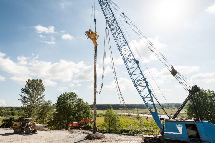 Site preparation and stone column installation to prepare property for new BC Hydro Substation. The work included clearing and grubbing of 17,300m2 of land and off-site disposal of approximately 35,000m3 of soil. The ground improvement work included the installation of 1,591 stone columns to a depth of 25 meters below grade. Due to the steep grades and elevation changes across the site, a 10 meter high Lock-Block retaining wall and 2 Sierrascape retaining walls were constructed to provide a level footprint for the construction of the access road and substation. Additional work included the installation of drainage pipe, ditches and final site grading.