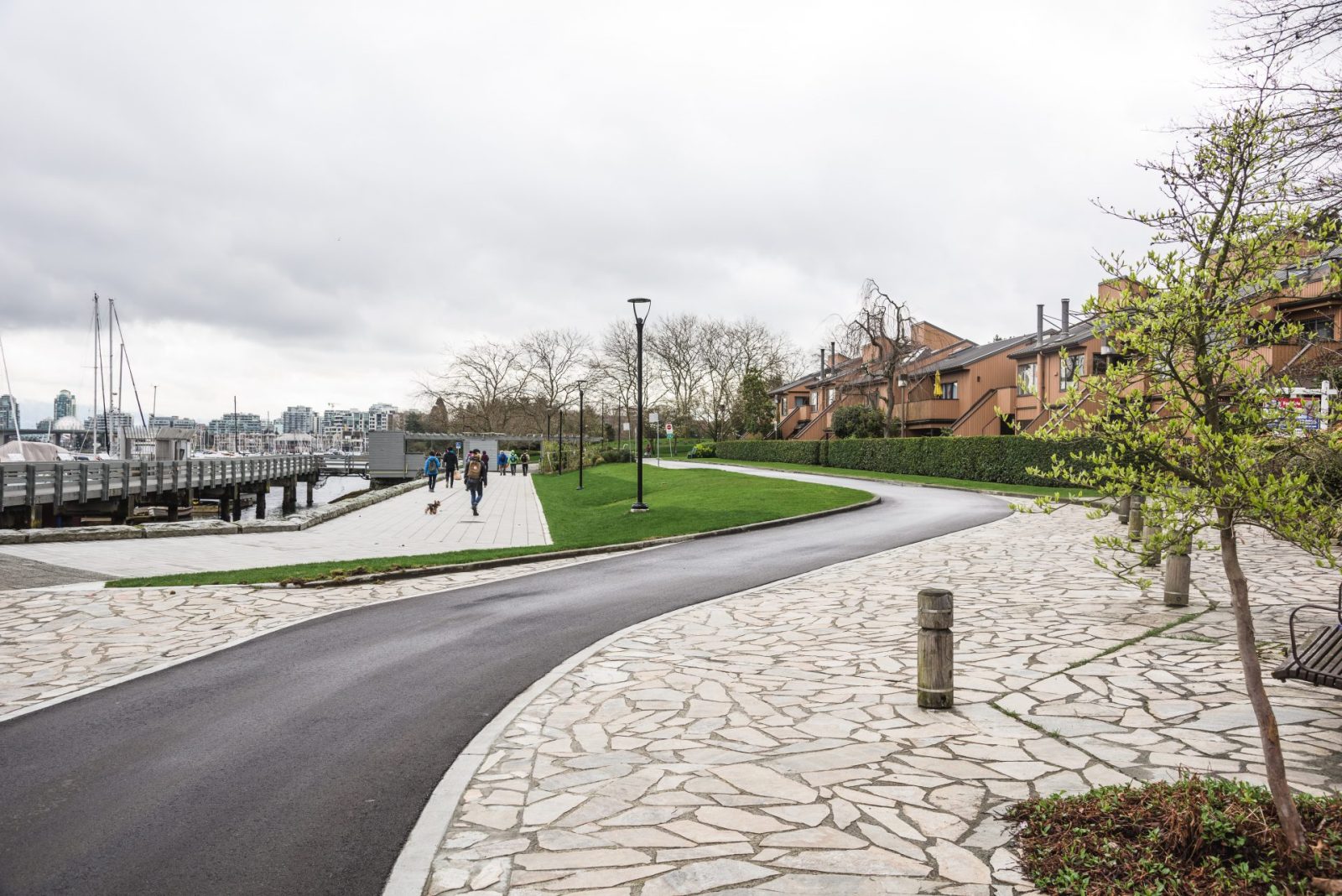 The City of Vancouver contracted Jacob Bros to revitalize and upgrade Vancouver’s oldest section of seawall, along the False Creek waterfront. This year-long project included the separation of pedestrian and bike paths, extensive landscaping and tree planting as well as partial fencing around the Charleson dog park and upgraded street lighting. Work was carried out from Alder Bay Walk to Stamps Landing, and along Creekside Drive (just west of Granville Island), in a congested public-use area with multiple stakeholders. Multidisciplinary work required dedicated traffic management, civil, electrical, concrete and horticultural crews to coordinate their efforts over a roughly two-km project site. Over 50 new trees were planted, and over a kilometre of new bike lanes were added to Vancouver’s growing network. A new electrical network was constructed to provide a new highly-efficient streetlight system that is architecturally suited to the park.